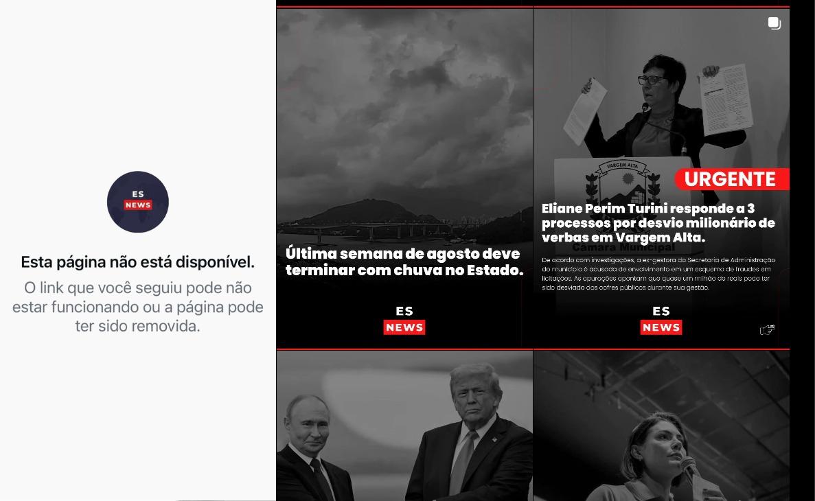 A plataforma Meta (Facebook Serviços Online do Brasil Ltda) retirou do ar uma página no Instagram criada para difamar a vereadora Eliane Turini (PSB), de Vargem Alta, logo após ela denunciar irregularidades no Hospital Padre Olívio (HPO).